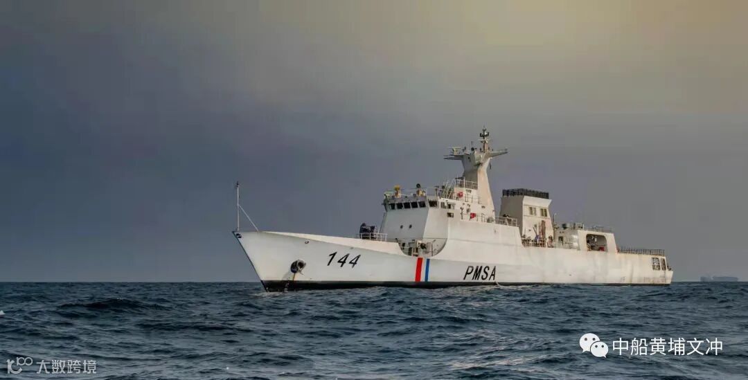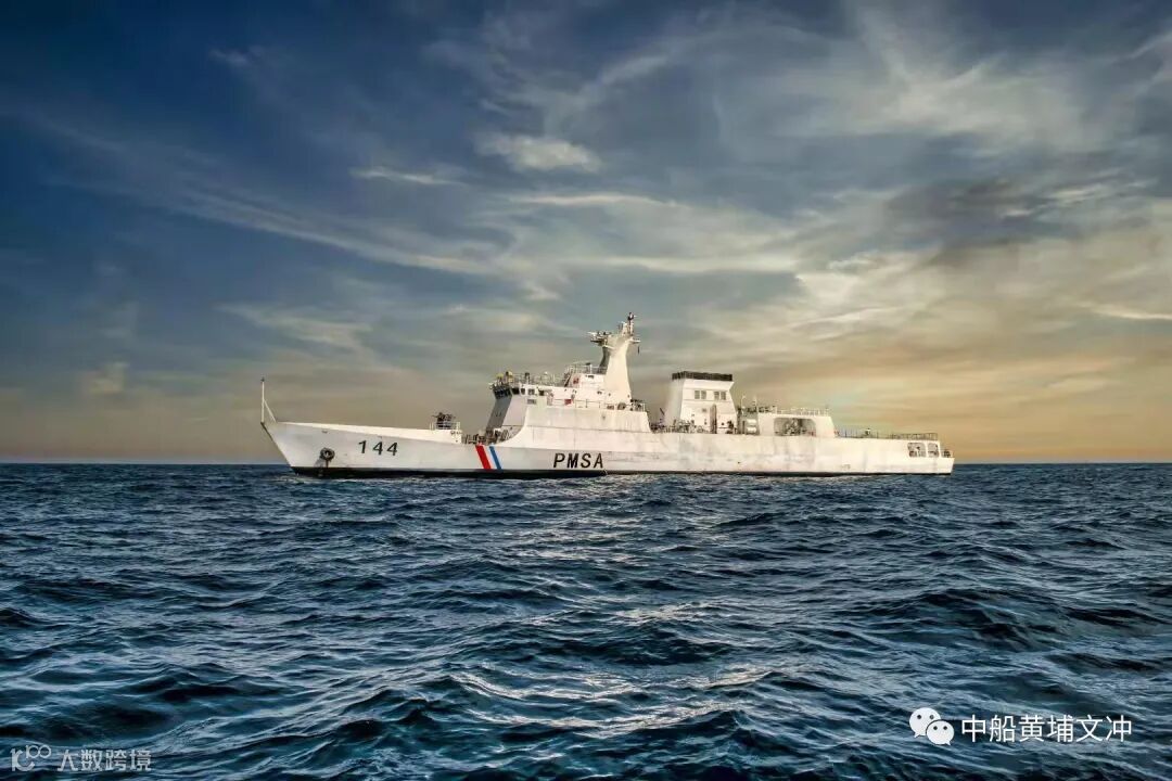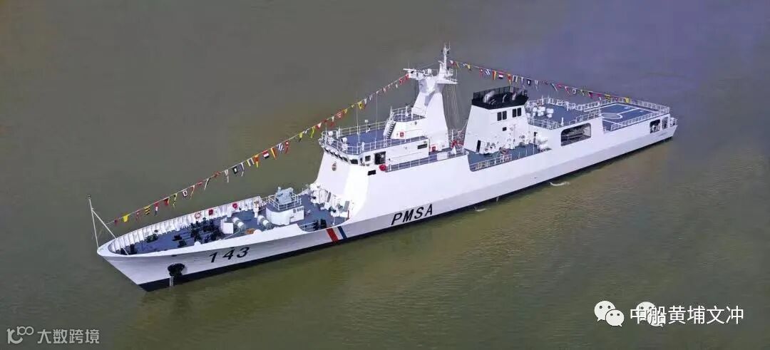 由中国船舶工业贸易有限公司对外签约,黄埔文冲承建的1500吨海事巡逻船首制船PMSA143 于2018年7月20日在广州交付,该船主要用于巴基斯坦管辖海域巡逻执法、应对非对称袭击和威胁、专属经济区及渔场保护、海上搜索救援以及日常训练等。