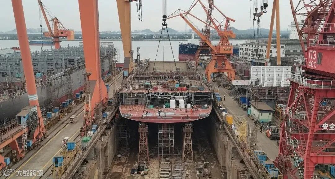 2021年11月26日,随着54米超长62A/63A总段顺利实现了2台200吨龙门吊双车联吊的吊装搭载作业,确保了狭窄位置不用外板施工,有效克服了坞宽受限的极大困难。正是在各工序的共同努力下,在2#坞完美实现了船体搭载作业,为系列船建造工作奠定良好开局。