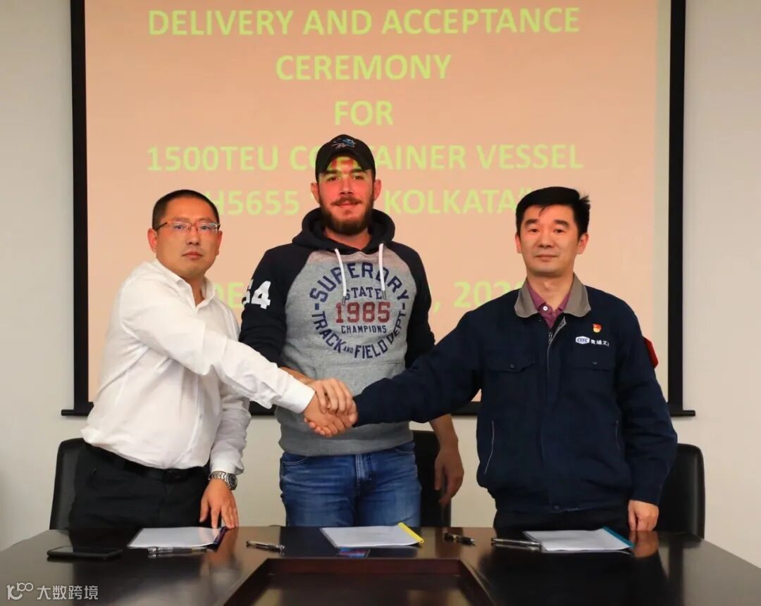 12月10日,中国船舶集团旗下黄埔文冲公司再传捷报,希腊COSMOSHIP公司的1500TEU系列船3号船H5655在文冲厂区签字交付。