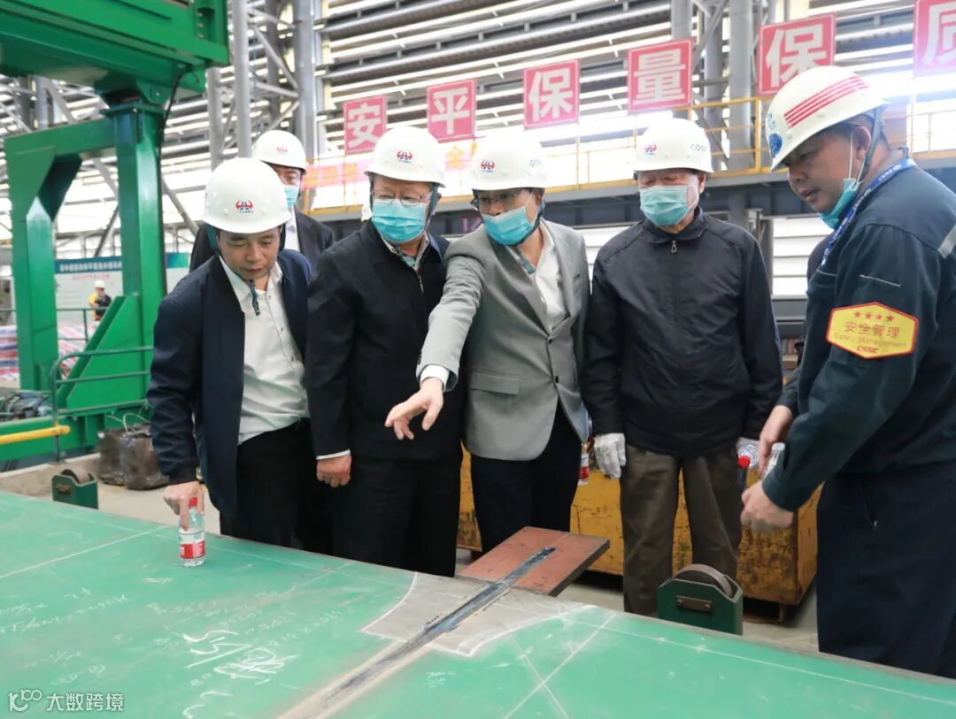 ▲ 12月3日,清华大学、陕西省交通厅、陕西省交通建设集团等单位领导、教授、专家和有关人员来到公司智能制造生产线参观和学习,深中通道管理中心总工办副主任金文良和公司造船事业三部副总工蒋巍等陪同讲解。