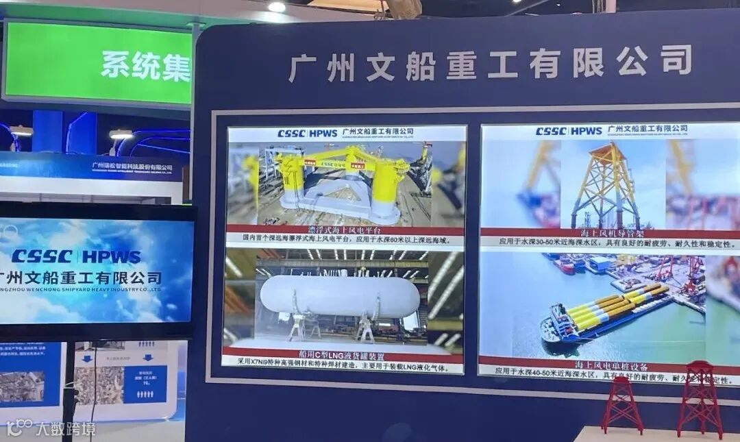 期间,公司展出了漂浮式海上风电平台、海上风电单桩、海上风电导管架、LNG罐等主营产品。