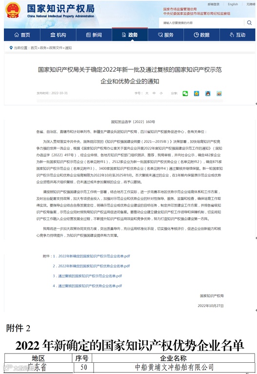 近日,国家知识产权局发布了《关于2022年度国家知识产权优势企业和示范企业评定结果的公示》,标志着公司获得“2022年度国家知识产权优势企业”称号。这是公司知识产权继2020年入选“广东省知识产权示范企业”之后的又一个里程碑。