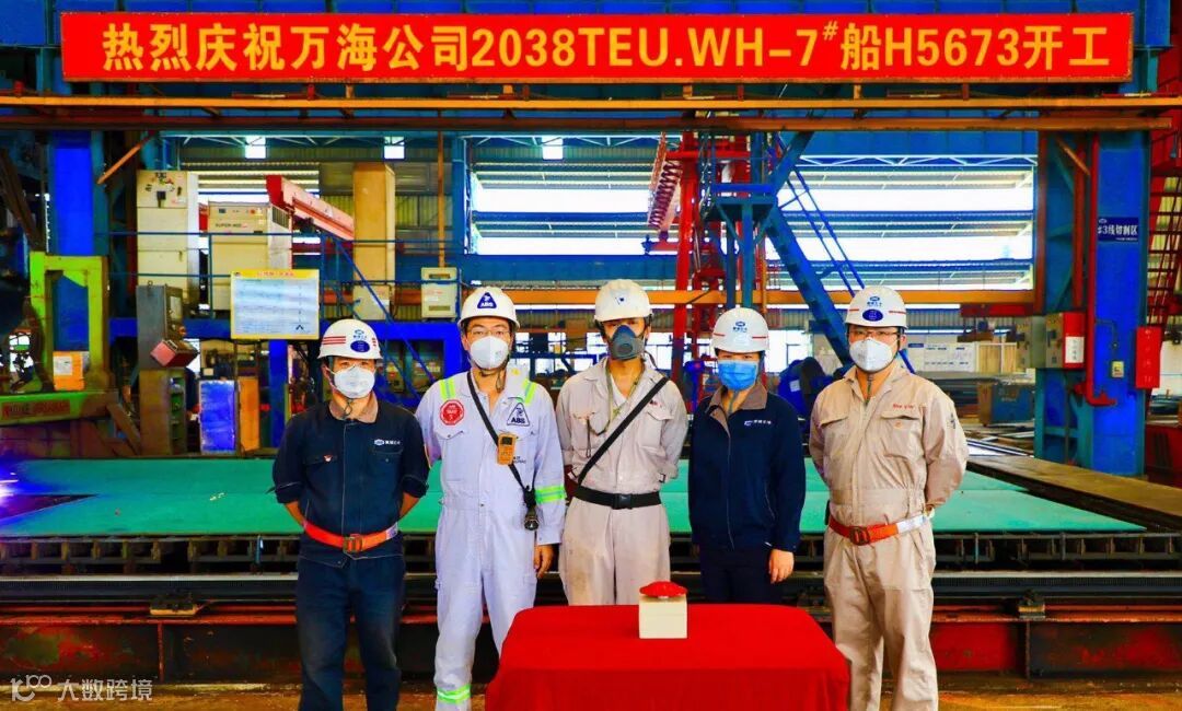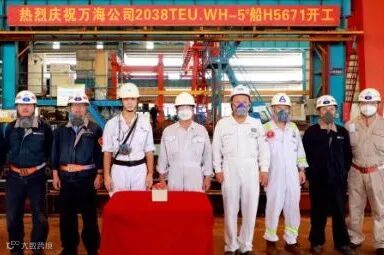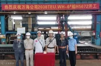 万海航运2038TEU项目6#船开工一月后,9月7日,中国船舶集团属下黄埔文冲公司在文冲厂区举行了该项目7#船(H5673)的开工仪式。