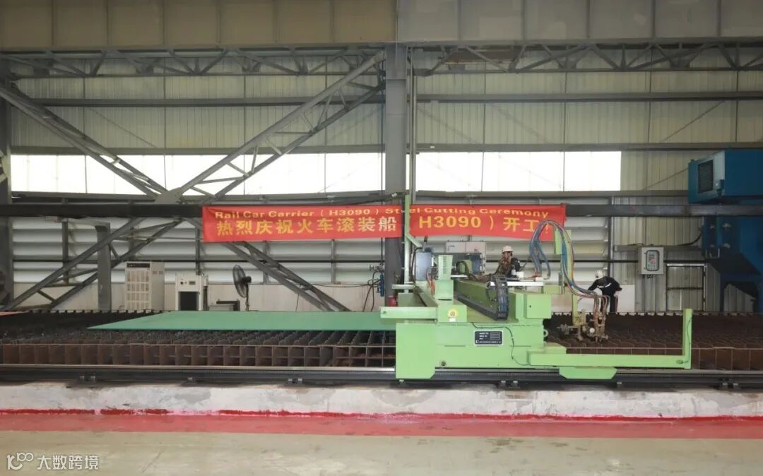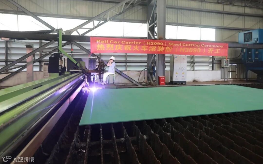 2020年6月10日,随着点火按钮按下,精准控制的切割喷嘴划过H3090船的首块钢板,标志着中国船舶集团属下黄埔文冲公司为美国Rail Ferry Newbuild Ⅱ LLC公司建造的火车滚装船项目进入连续生产阶段。