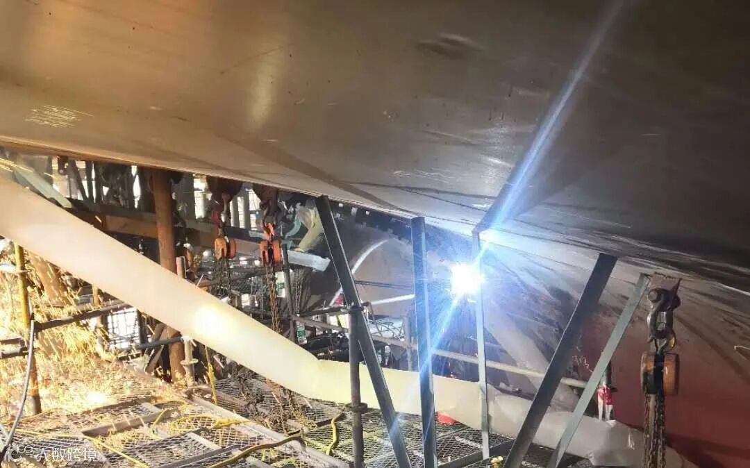其中,一天完成两个艉轴架(单个45吨)吊装到位,13天完成托架铸钢件装焊,17个小时完成左右舷两根桨轴的进轴的速度,以及项目的质量,都让船东称赞不已。