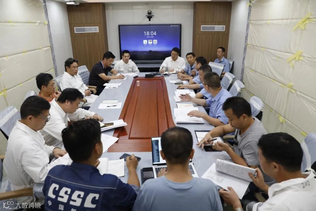 为了能够拿下这一次胜利,公司建造、质量、技术方方面面的专家把每个步骤都在纸上推演一遍,并对可预料的问题进行了讨论,制定了对策……最终,12轴线模块车进轴方案有效保障了长轴的顺利安装。