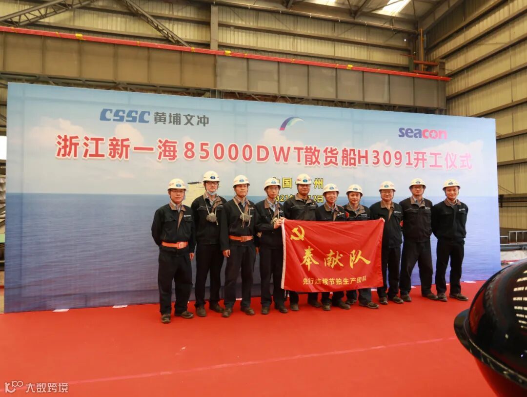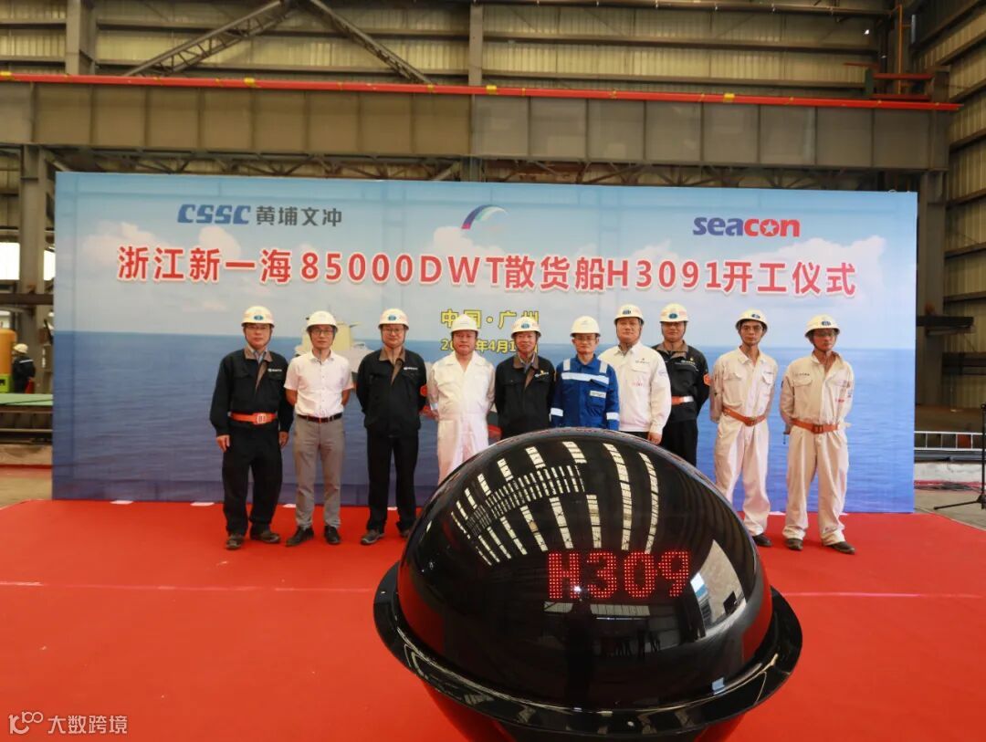 4月12日上午10时58分,中国船舶集团旗下中船黄埔文冲船舶有限公司自主研发设计的85000DWT散货船首制船(H3091)在黄埔文冲龙穴厂区开工,并举行了简单而隆重的开工仪式。船东浙江新一海海运有限公司、洲际船务集团有限公司及DNV船级社等单位领导和嘉宾出席了仪式。