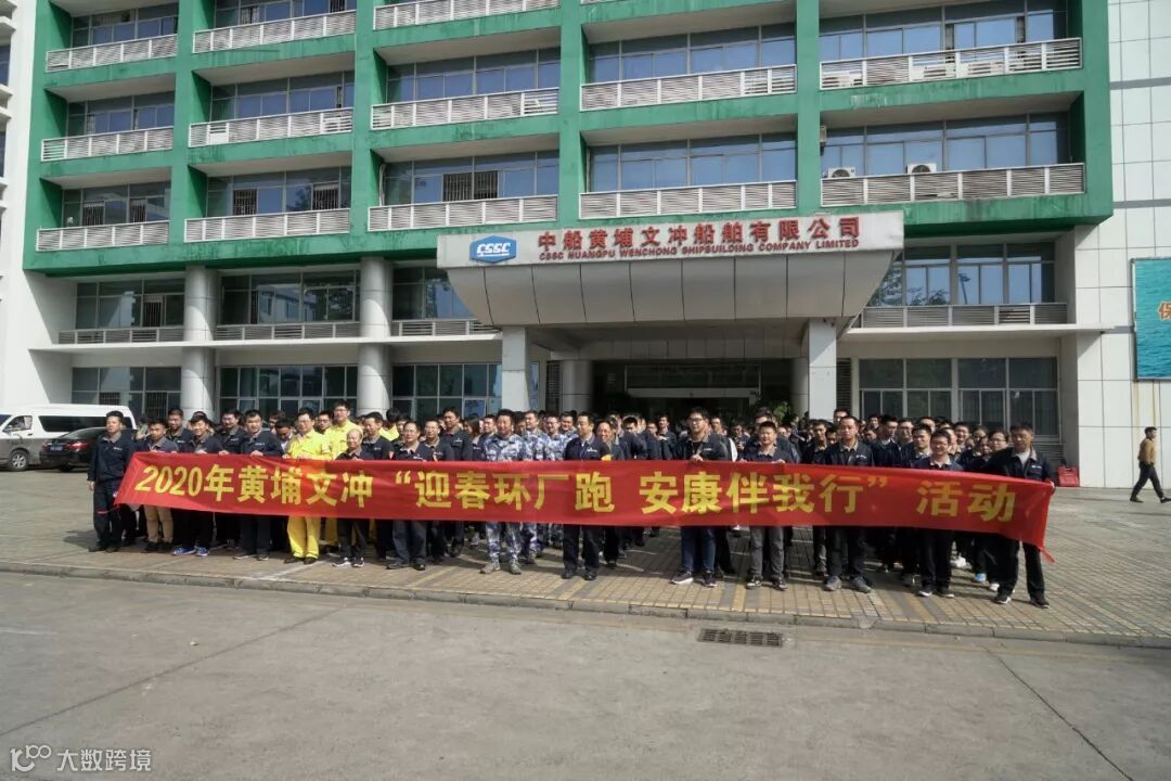 1月3日,中船黄埔文冲一年一度的传统文化盛事“迎春环厂跑 安康伴我行”活动在三厂区同时举行。中午12点整,迎春环厂跑正式开始,公司领导班子、驻厂军代表和全厂600余名干部职工一起,以整齐的队列和口号,环厂区慢跑一圈,以特殊的方式迎接2020年的到来……
