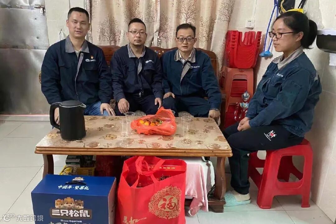 ▲黄埔文冲公司总经理助理,公司执行董事、总经理陈宏领带队家访慰问骨干及家属。