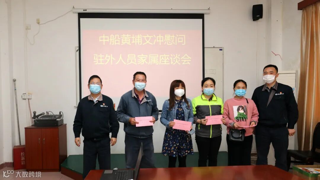 新冠疫情爆发以来,中国船舶集团旗下黄埔文冲驻巴基斯坦1500吨级海事巡逻船项目人员全力抗击疫情,坚守岗位、坚持工作,为舰船试航、交付攻坚克难。随着各国防疫措施的升级,中巴间正常人员往来暂时中断,让驻巴人员和他们的家属又多了一分挂牵和担忧。为了解驻巴员工及其家属遇到的困难,解除他们的后顾之忧,4月8日,公司邀请驻巴人员家属代表雷露等召开慰问座谈会,党群工作部部长田勇、造船事业一部党总支书记罗汉清向代表们送去慰问金以及米、油等慰问品,表达公司的关怀和温暖,让驻巴人员和他们的家属安心、放心。后续,公司还将根据具体情况,以登门拜访或电视电话等形式对20名驻巴员工家庭全部进行慰问。
