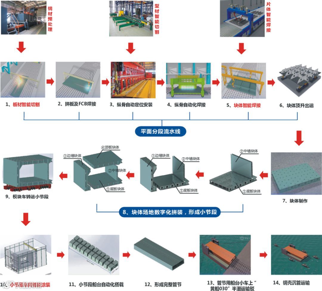 【打造“四线一系统”智能生产线实施钢壳沉管 数字化总组、智能化搭载】