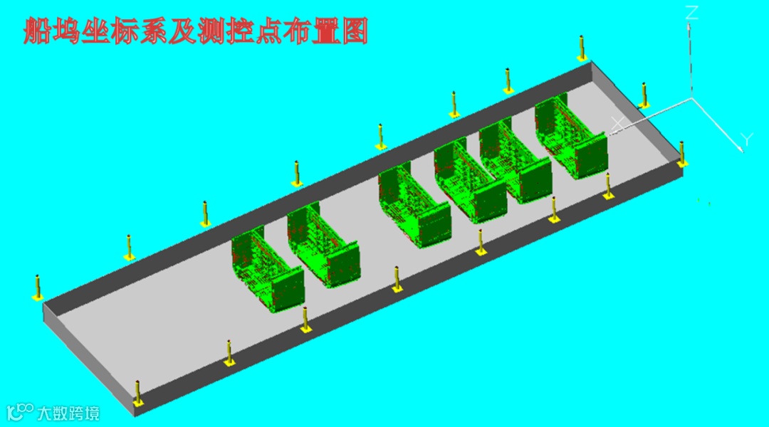 2.实现了船坞三维坐标体系与船舶设计三维模型坐标体系的对比印证,分(总)段搭载更快、更精准。甚至可以使一些过去不可能的搭载工艺成为现实。