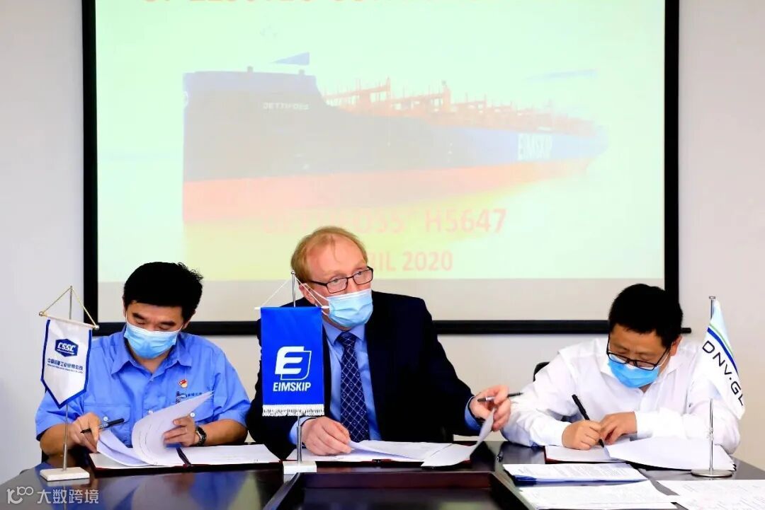 下午,黄埔文冲公司代表与冰岛Eimskip公司代表在交船文本上签字,标志着2150TEU冰级集装箱船“DETTIFOSS”轮(H5647)圆满交付。