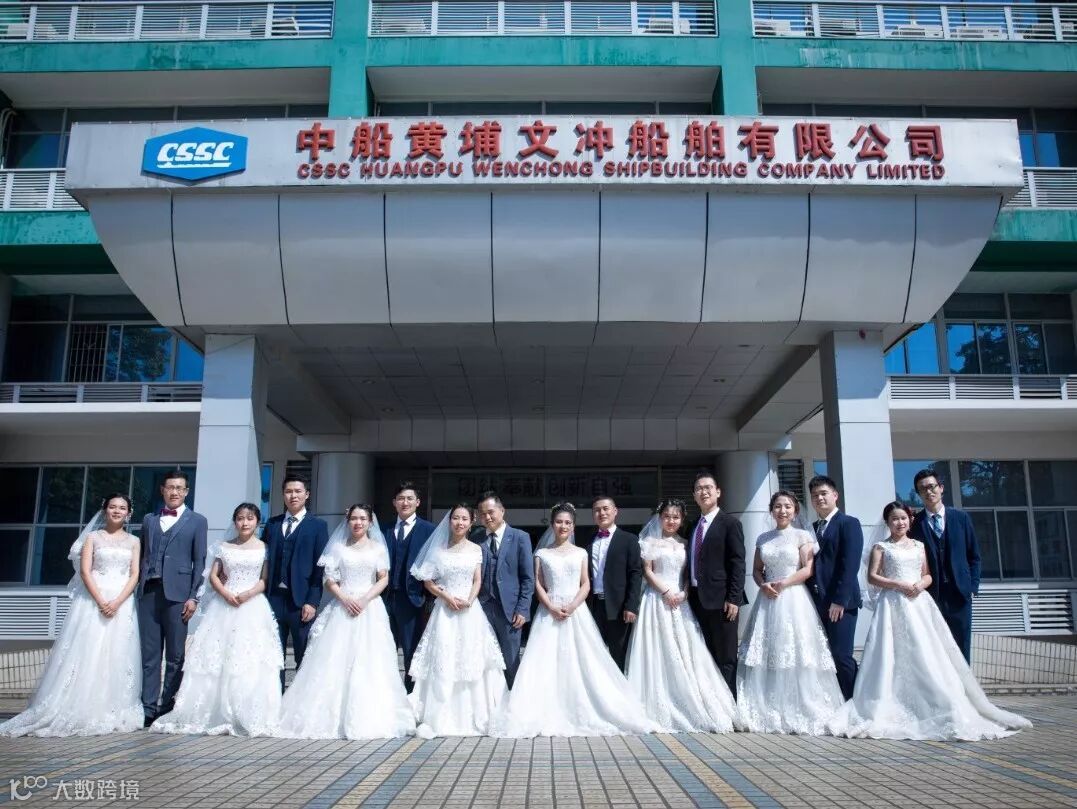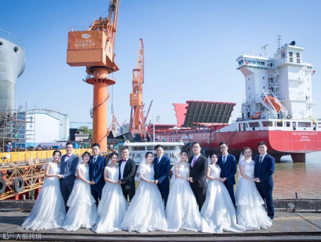 来自中船黄埔文冲船舶有限公司的9对新人一同在他们成长成才的地方举办婚礼。(滑动下图 惊喜等你~)