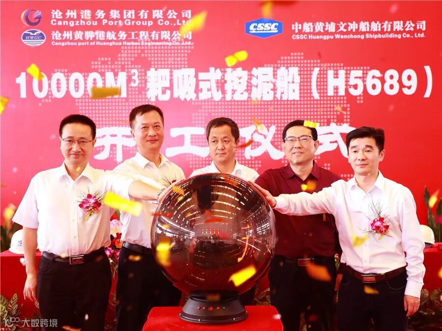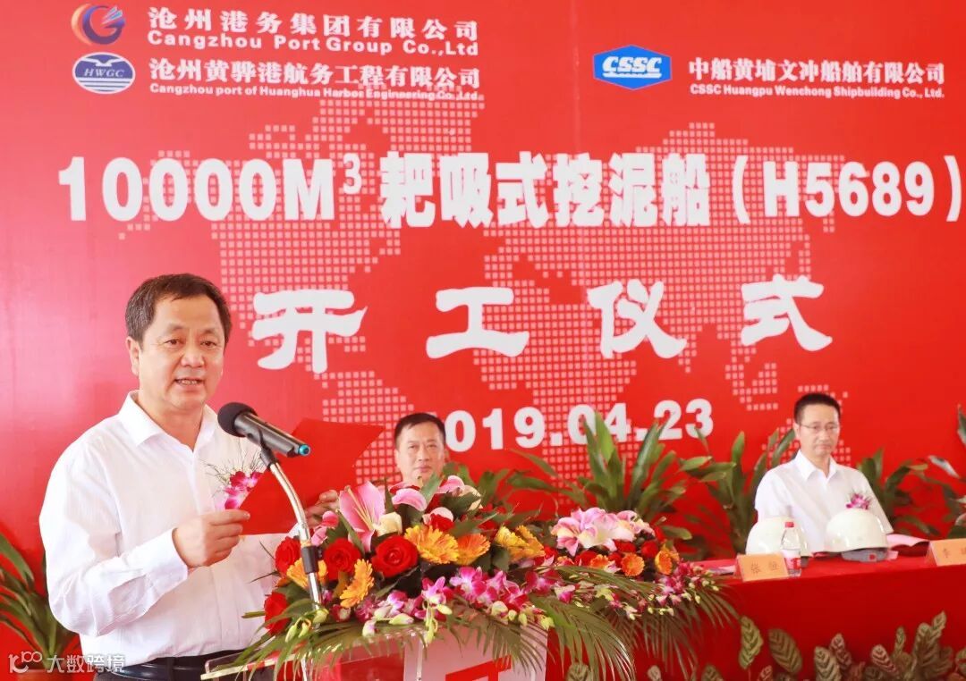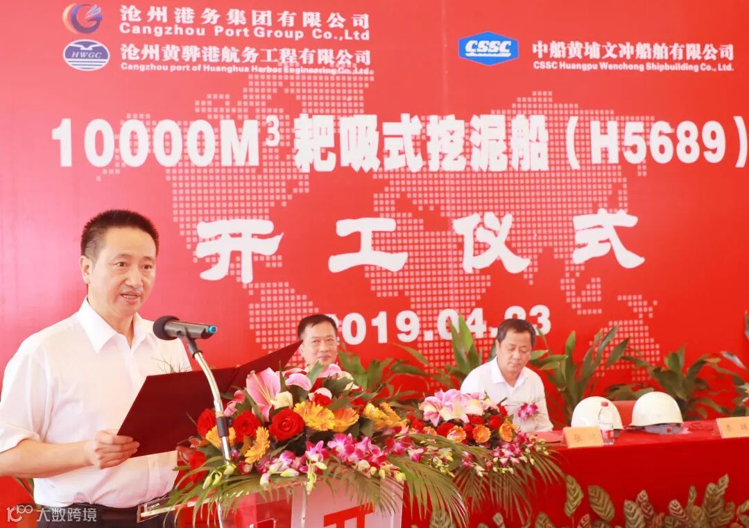 2019年4月23日,黄埔文冲为沧州黄骅港航务工程有限公司建造的10000方自航耙吸式挖泥船2#船(H5689)在文冲厂区举行了简单而隆重的开工仪式。