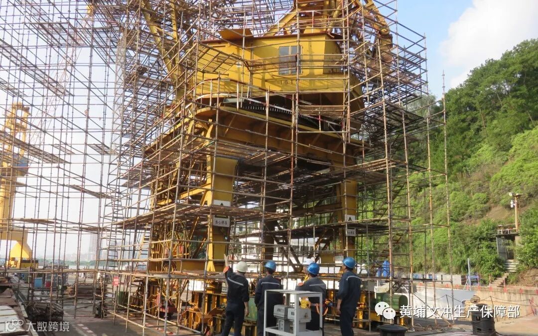 (黄埔区副巡视员、珠江国际慢岛领导小组办公室主任邓伟雄、黄船社区居委会主任何彩亦、生产保障部部长助理刘忠东及其他工作人员一同巡查八区,对八区的防风稳定性进行了确认,并提出了应急疏散的预案。)