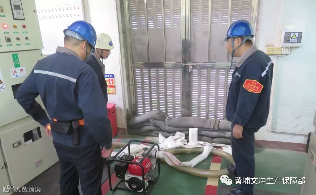 同时生产保障部领导亲自来到一线指挥,将抗台抢修人员综合分配为电力系统抢修组、动力管道抢修组、特种设备、房屋、生活区抢险组、设备设施抢修组等八个分区域、分职能的抢修组。各抢修组既有分工行动,又有协同作战,在江水倒灌、潮水快速上涨之际,立即对各重点区域进行停电、排水,各项工作平稳有序进行,全力以赴降低公司固定资产损失。