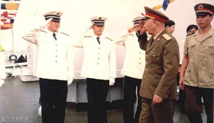 1991年9月8日,国家主席杨尚昆,中央军委副主席刘华清视察黄埔造船的770艇。