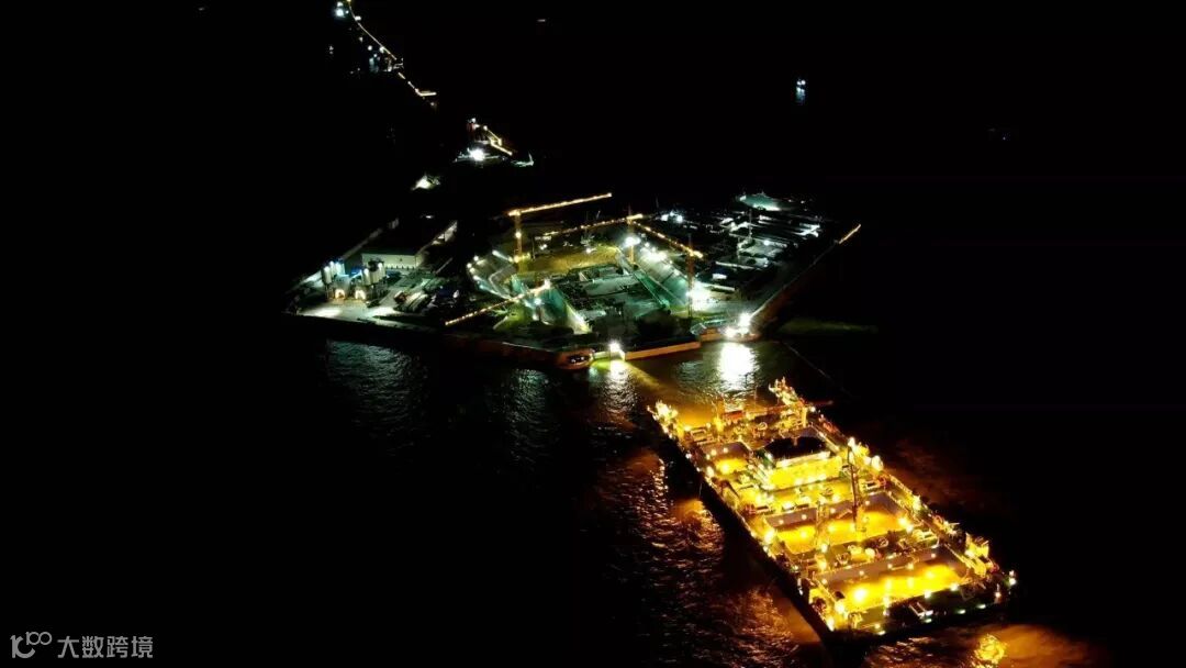下午6点30分,经过47公里的长距离运输,以及7次航道转换,一体船顺利抵达西人工岛岛头,开始系泊绞移作业。