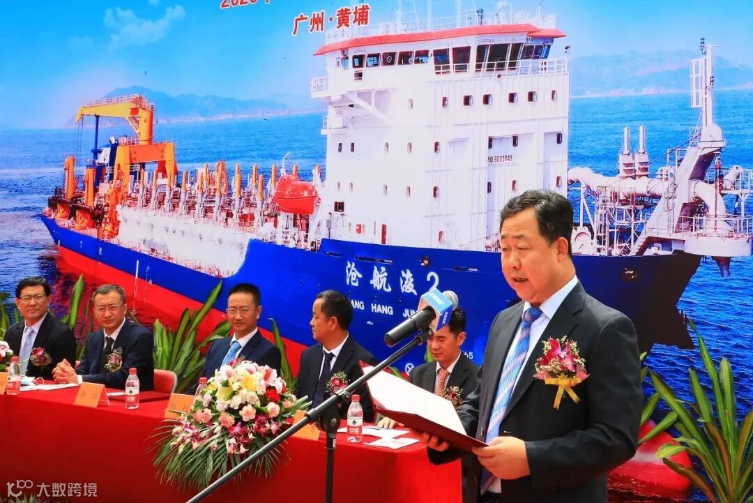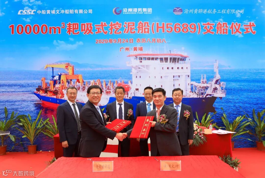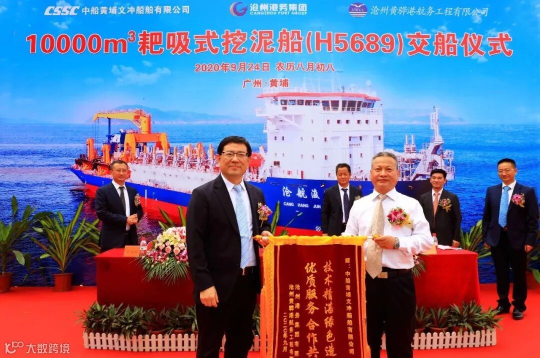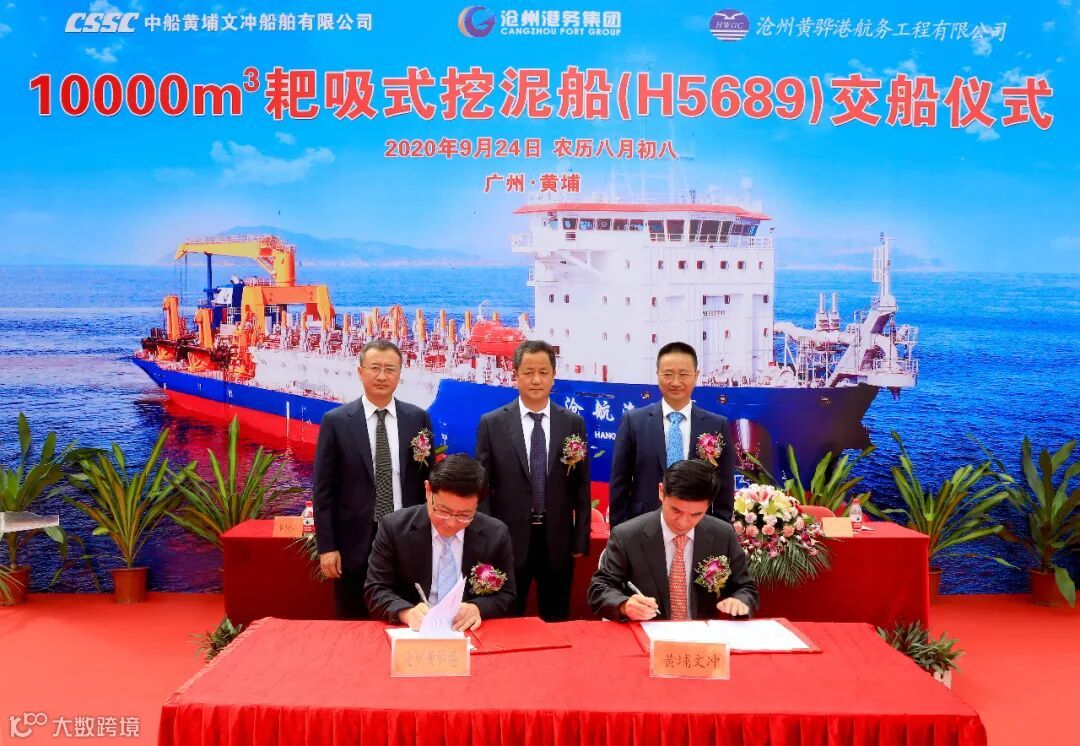 2020年9月24日上午,中国船舶集团属下黄埔文冲公司为沧州黄骅港航务工程有限公司建造的10000方自航耙吸式挖泥船2#船(H5689)在文冲厂区顺利交付。