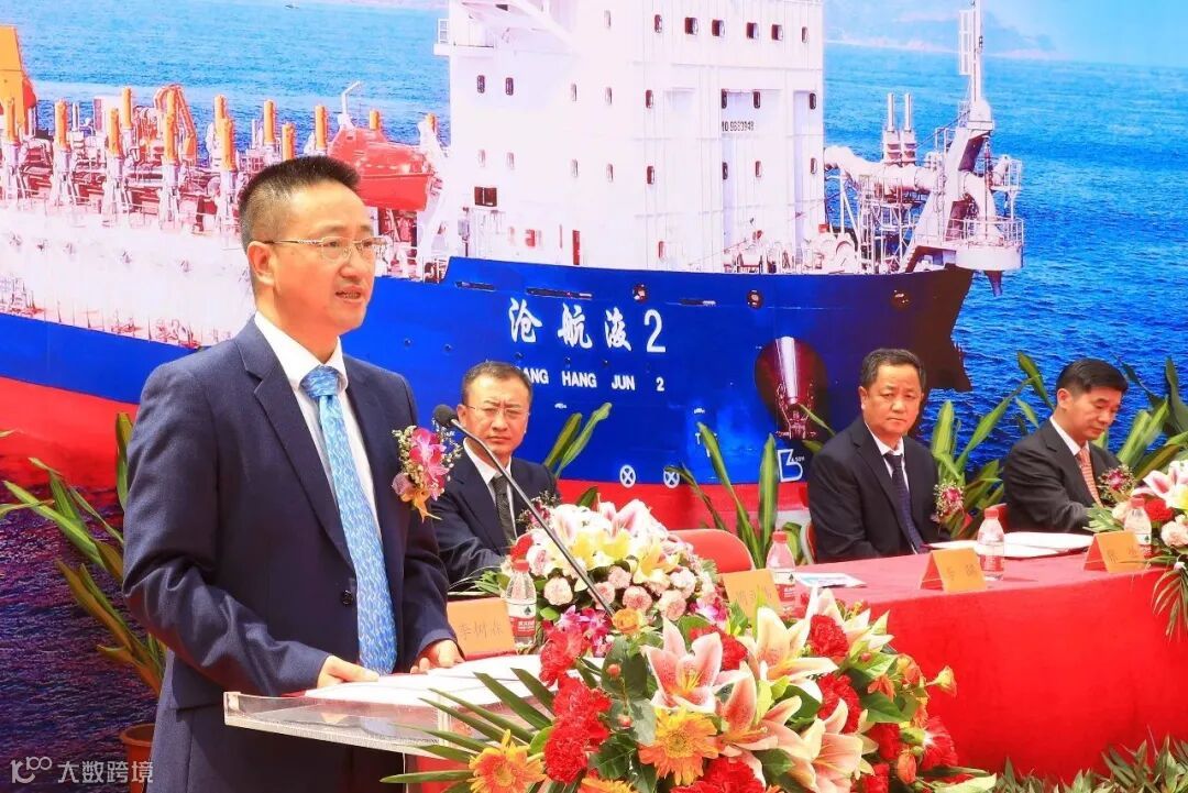 沧州港务集团有限公司副总经理张恒、沧州黄骅港航务工程有限公司董事长李树森、中国船级社广州分社副总经理周立伟、黄埔文冲公司副总经理李晞等领导、嘉宾共同出席了交船仪式。