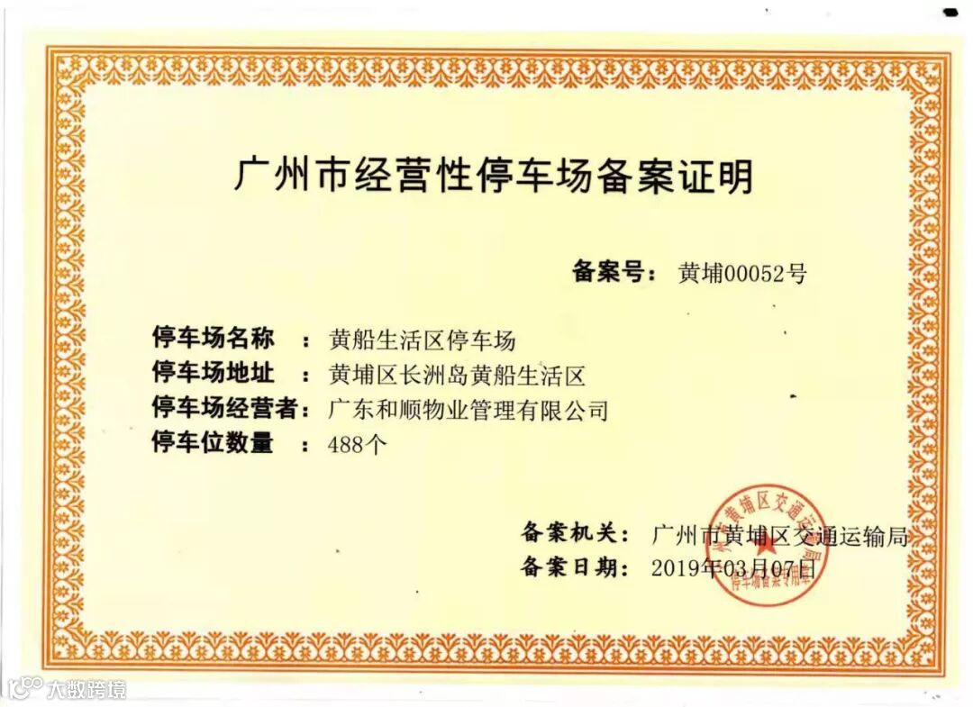 广东和顺物业管理有限公司(以下简称“和顺物业公司”)在黄船生活区的工商登记注册地址为广州市黄埔区思亭路黄船二街88、90号首层,按照前期区交通运输局关于办理停车场备案证明的办事指南,备案证明的停车场地址要与工商登记的注册地址一致,实际停车位置及范围是整个黄船生活区的露天道路、公共区域,据了解,目前广州市多个停车场经营者的备案证明都存在该问题,为此,经广州市交通运输局与广州市市场监督局等单位研究,3月4日,广州市交通运输局结合工作实际对《广州市经营性停车场备案办事指南》进行了修改,备案证明的停车场地址应以实际为准,和顺物业公司已在3月7日在区交通运输局按照最新的办事指南重新申领了《广州市经营性停车场备案证明》,停车场地址为黄船生活区。
