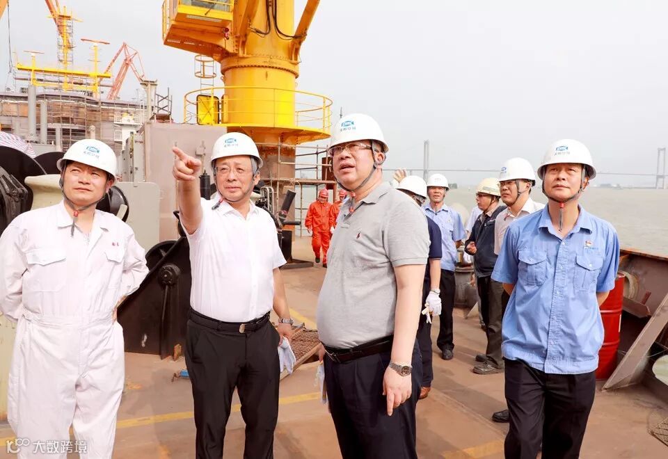 6月20日,长江航道局付绪银局长一行莅临公司文冲厂区,检查6000方和13800方耙吸式挖泥船建造情况。黄埔文冲董事长陈忠前、副总经理李晞、副总经理张俊雄等领导参加活动。