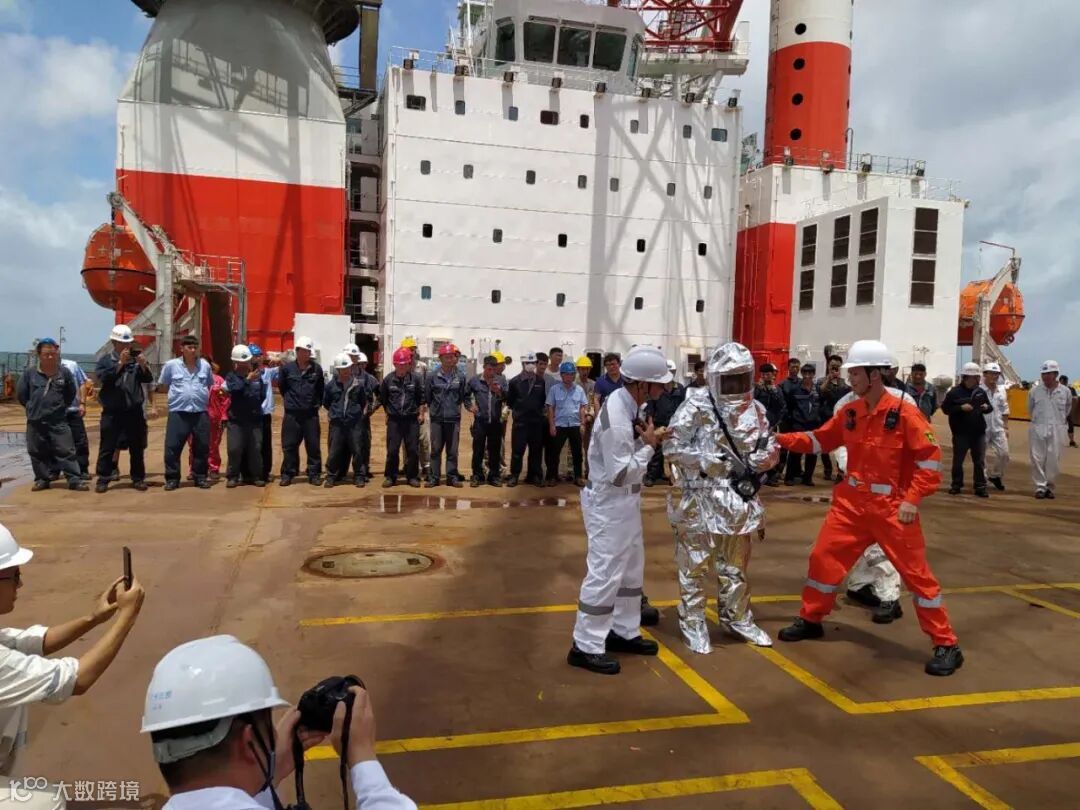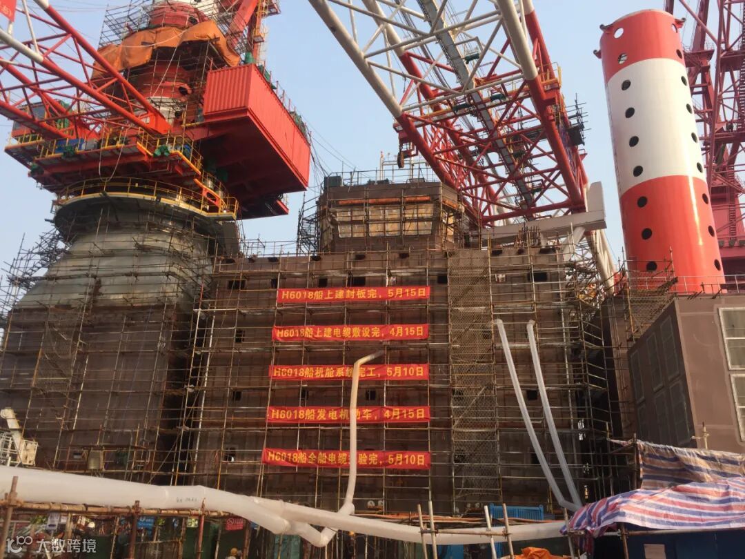 电装作业区“按班包区,错峰倒班”,仅用3个月完成370公里电缆敷设,4月15日发电机顺利动车。搭载作业区8天6吊,于5月29日完成桩腿接桩工作。船装作业区6月8日完成2台吊车钢丝绳安装,使原计划的1个月工期缩短了近一半的时间。机装作业区24小时不间断串油,7台发电机组从动车到自动电站结束仅用65天。190分钟结束倾斜试验,9天完成试航。为规避疫情风险,该船进口设备全部由我国工程人员自主调试……