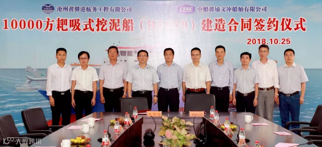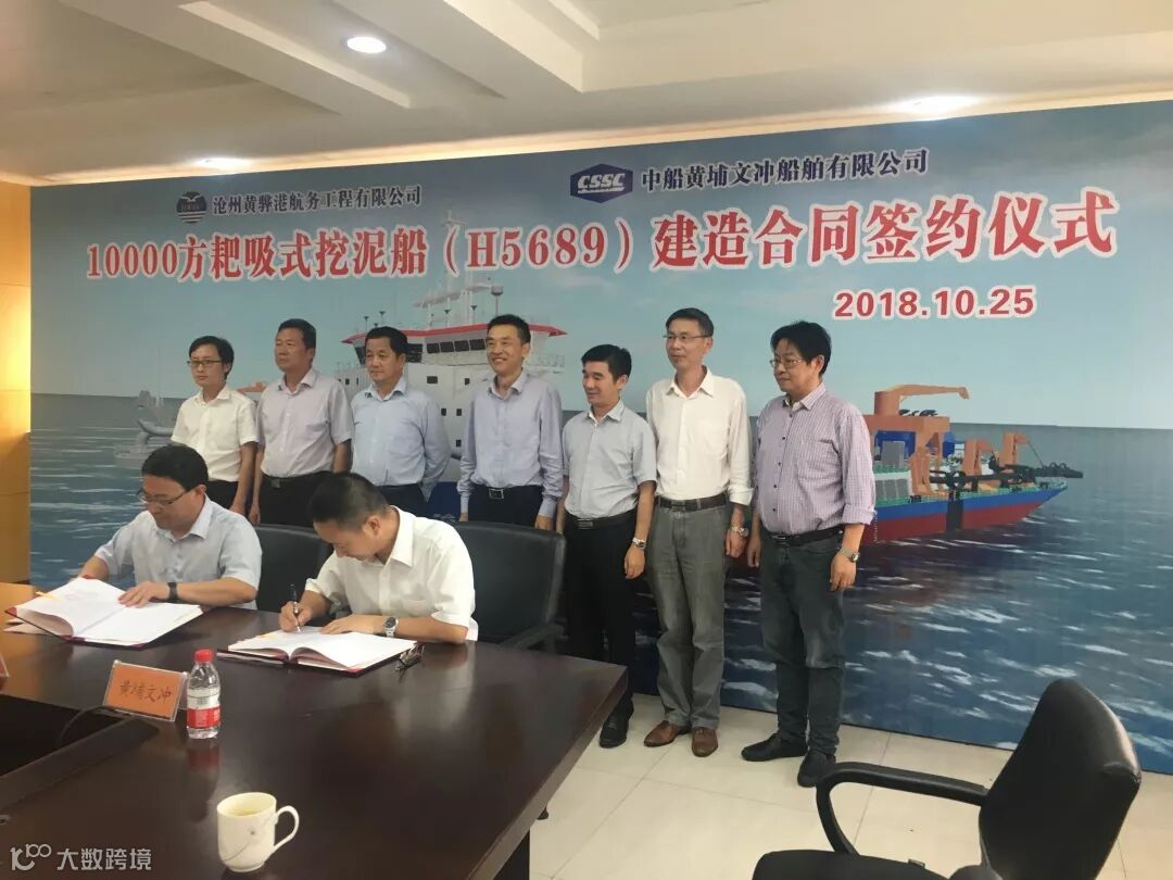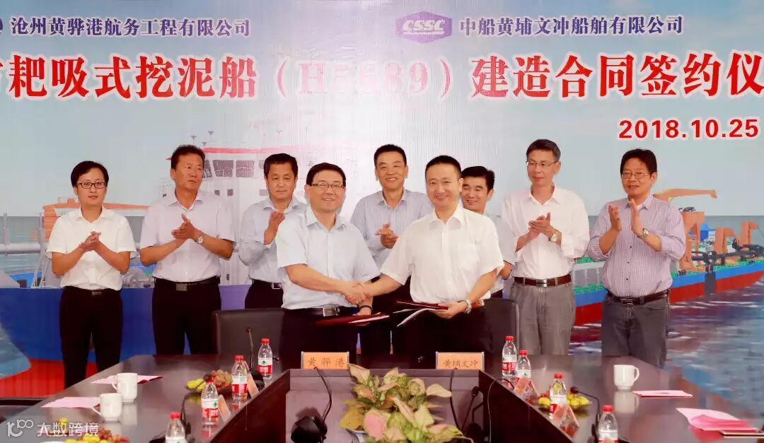 2018年10月25日,沧州黄骅港航务工程有限公司10000方自航耙吸式挖泥船项目建造合同签约仪式在公司文冲厂区举行。