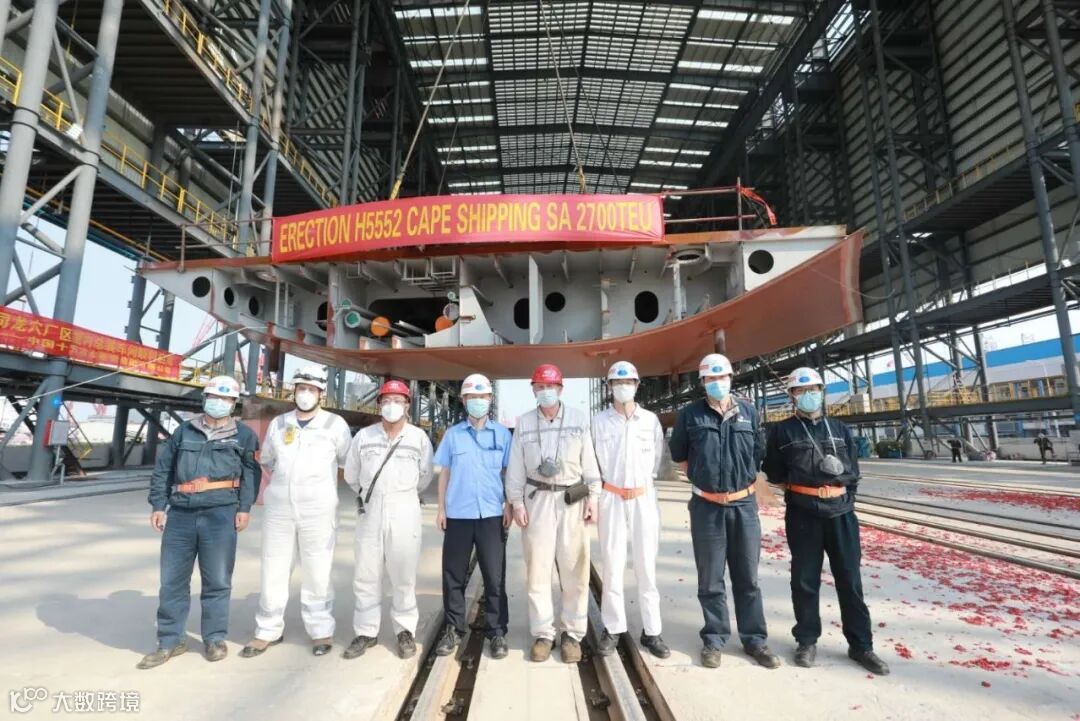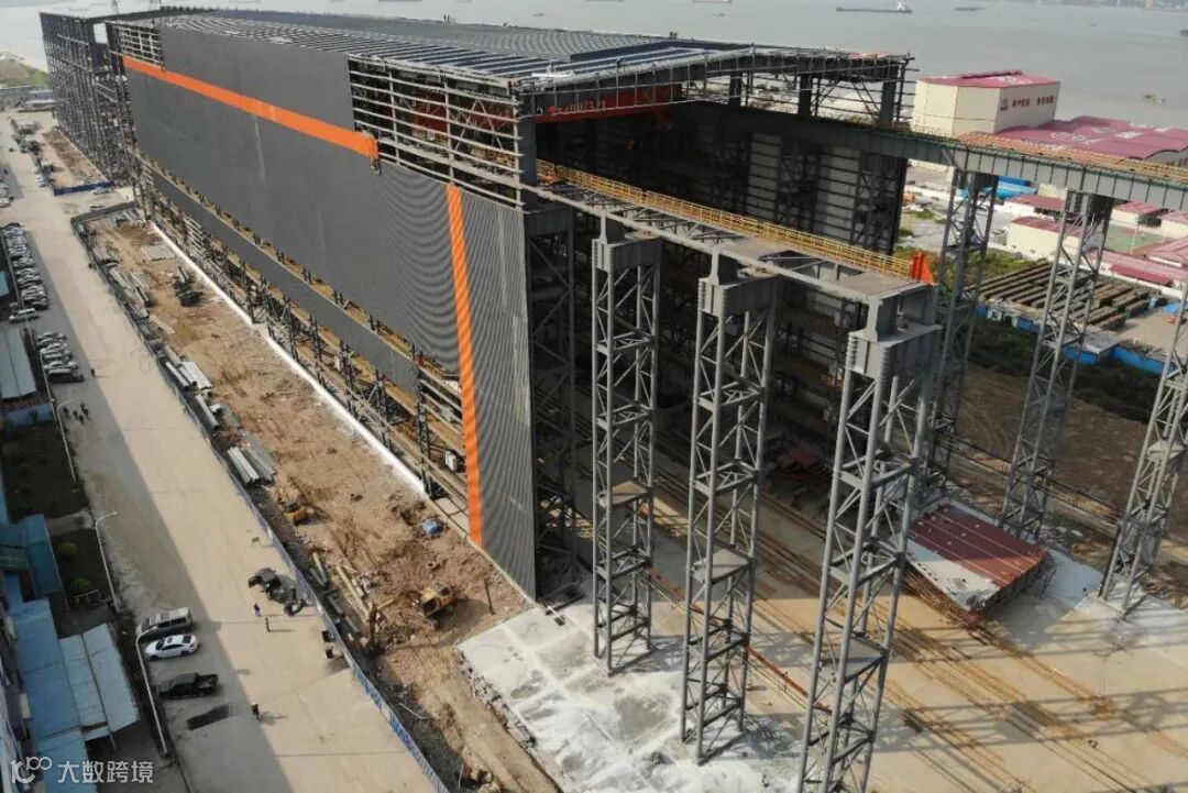 车间启用后,立即迎来了三个节点,包括:H5552(2700TEU支线集装箱船)上船台、深中通道E6管节段正式上水平船台搭载、深中通道项目E10管节段正式开工。