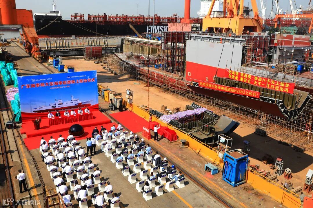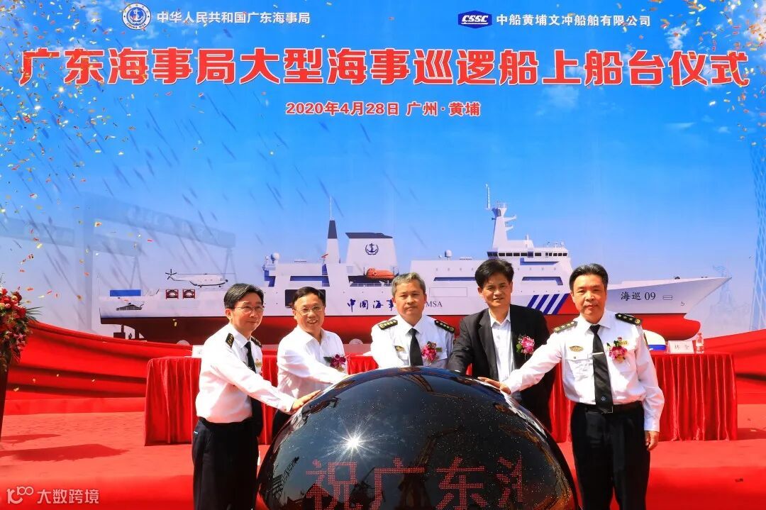 上午10点,广东海事局大型海事巡逻船(H2382)上船台仪式在黄埔文冲公司举行。