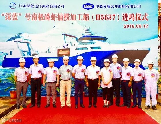 8月12日,中船黄埔文冲舶舶有限公司(简称黄埔文冲)建造的我国首制南极磷虾船“深蓝”号在该公司文冲厂区进坞搭载。该船是国家农业部(现农业农村部)批复的国产首艘专业南极磷虾捕捞加工船,将填补我国在南极磷虾高端渔船领域的空白,大大提升我国在南极磷虾科考、捕捞、加工等领域的技术水平。