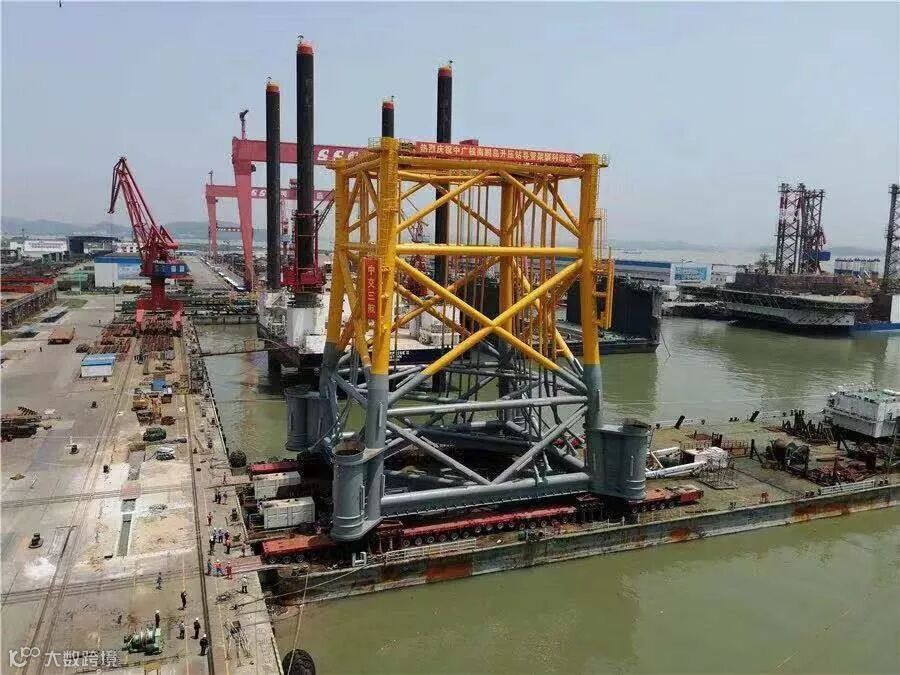 5月12日,重工公司承建的首台广东省阳江南鹏岛升压站导管架在龙穴厂区顺利装船交付并启程前往阳江南鹏岛水域进行安装。