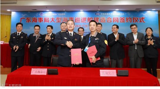 12月20日,中国船舶集团所属中船黄埔文冲船舶有限公司(下文简称:黄埔文冲)与海南海事局在海口签订海南海事局大型巡航救助船建造合同。