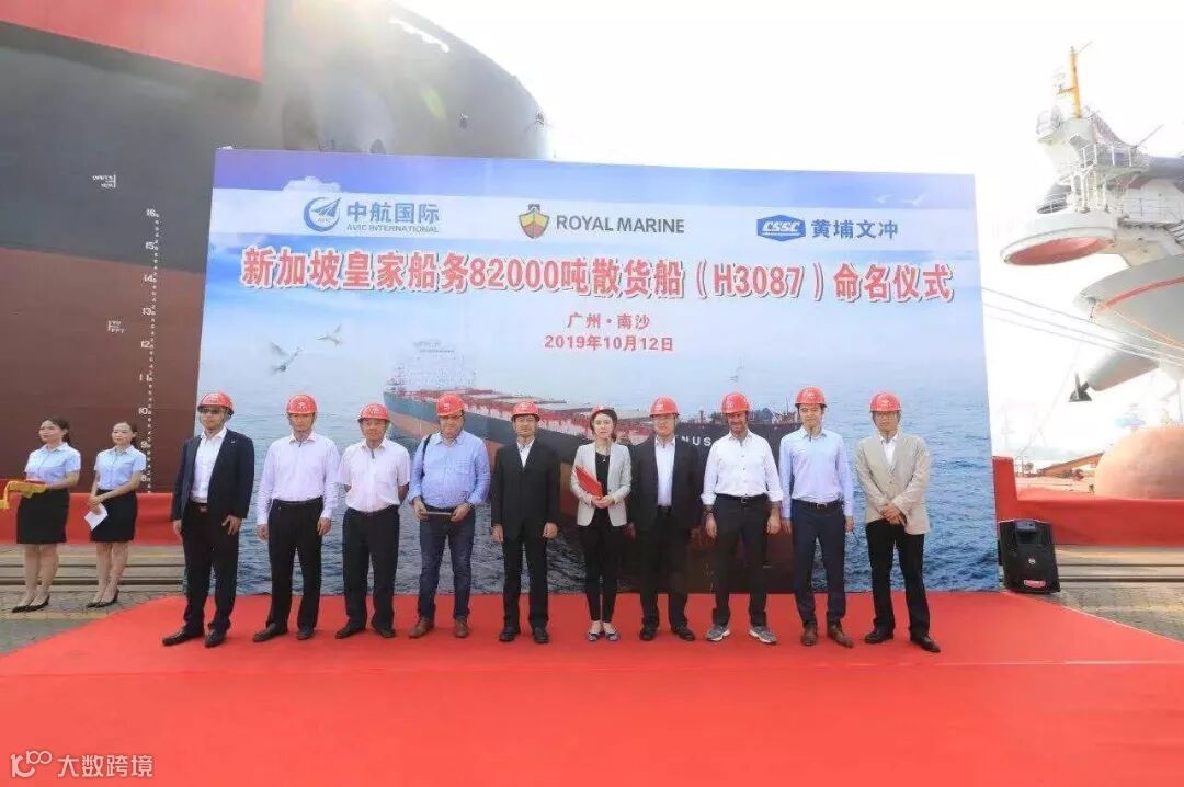10月12日,公司为新加坡皇家船务控股有限公司建造的82000吨散货船H3087在龙穴厂区命名、离厂。