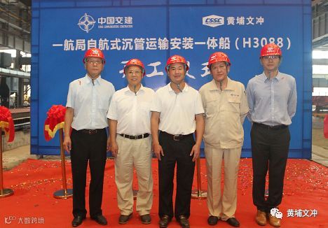 中交一航局、深中通道管理中心、中国船级社广州分社、上海振华重工、黄埔文冲等相关单位的领导出席了开工仪式。