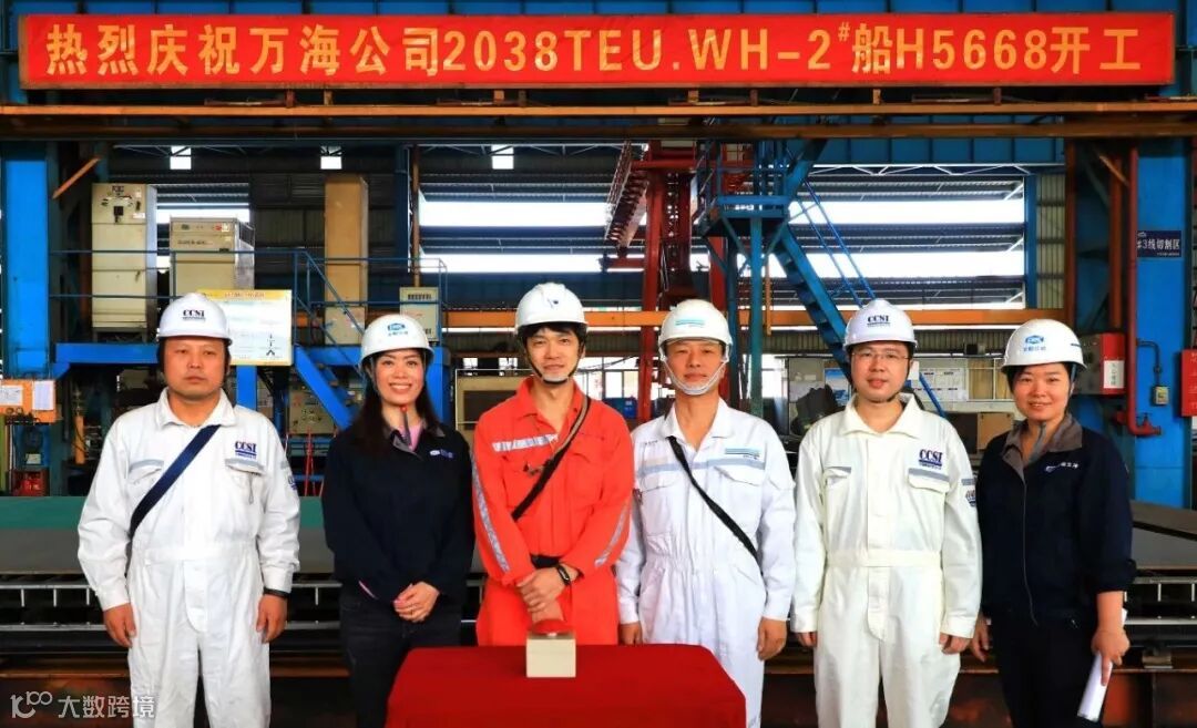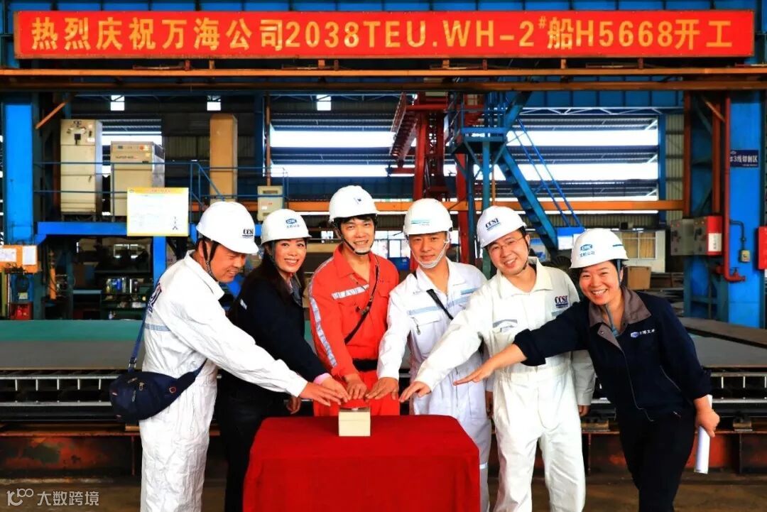 1月8日,中国船舶集团所属黄埔文冲公司为万海航运建造的2038TEU集装箱船2号船(H5668)在文冲厂区开工,万海航运船东、DNV.GL船检出席了开工仪式,并为该船的开工启动点火。H5668是公司2020年第一艘开工的产品。