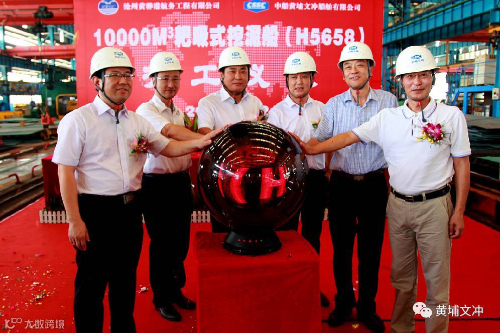 7月21日,公司为沧州黄骅港航务工程有限公司建造的10000方自航耙吸式挖泥船(H5658)在公司文冲厂区举行简单而隆重的开工仪式。沧州港务集团有限公司总经理刘吉利、黄埔文冲副总经理李晞、沧州港务集团副总经理张恒、沧州黄骅港航务工程有限公司总经理李树森、中国船级社广州分社市场总监王立新、中船集团第七○八研究所副总工程师费龙共同出席了仪式。