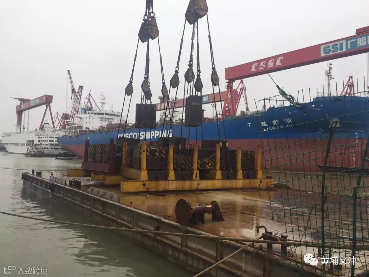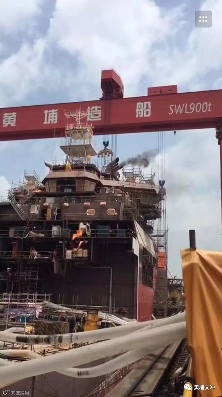 6月3日上午,海工公司在建产品H3080饱和潜水支持船在船坞搭载阶段迎来发电机动车项目。