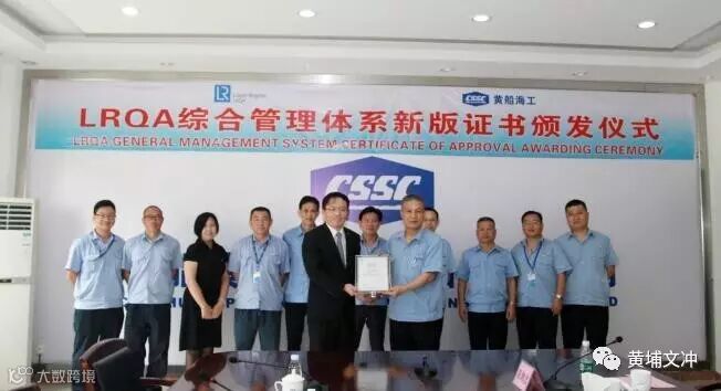 6月14日上午,黄船海工隆重举行LRQA综合管理体系新版证书颁发仪式。劳氏质量认证(上海)有限公司王崧总经理为黄船海工公司颁发新版体系证书,标志着黄船海工正式通过新版体系标准转版审核。