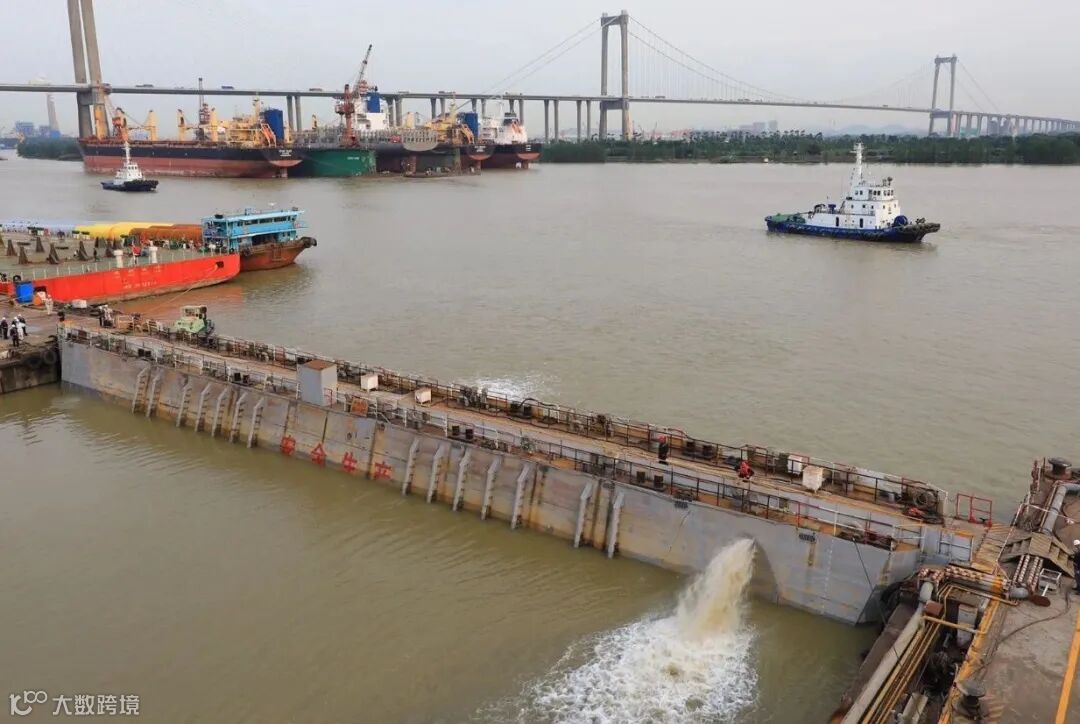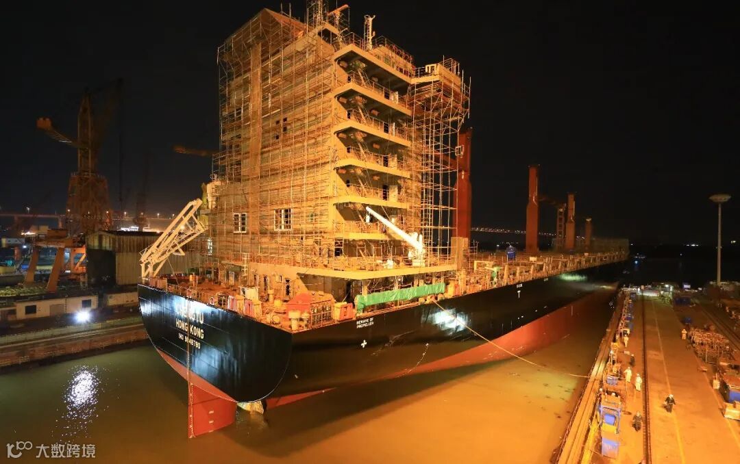 H5655船总长171.91米,型宽24.92米,型深13.60米,满载1500TEU,设计吃水7.40米,2019年11月13日进坞并联搭载。