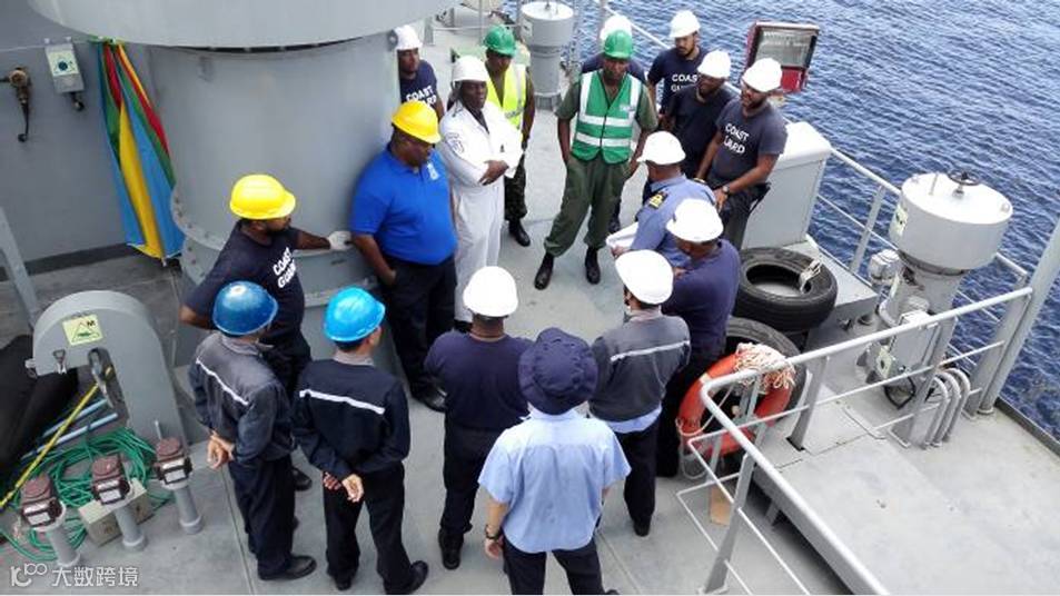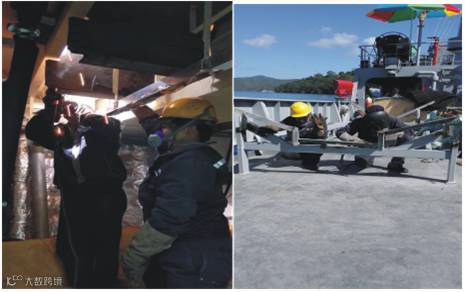 在改装工作开始前,王天杰带领大家接受了特多海警基地安全培训、观看了驻特多大使馆发放的安全注意事项光盘,组织内部也重点对船上动火工作及起吊作业进行安全分析及交底。改装组人员每天下午5:40开会讨论第二天的施工项目,分析存在的安全隐患和制定预防措施,保证改装组成员安全前提下开展改装工作。根据海警要求改装组克服重重困难,充分利用船上自带功能完成变频器进舱工艺孔开孔回装工作、岸电卷车基座修改定位安装工作、308室改装工作、家具布置工作等。通过改装组齐心协力,在没有配套设备的情况下完成“尼尔森”号主炮筒体加装、机枪座定位焊接、机舱海水管路修改、艉部小艇摆放架修改等系列改装工作。(董伟锋)