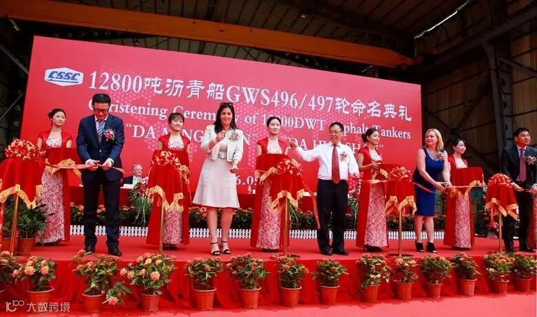 5月12日上午,晴空万里,文船公司在厂区隆重举行了为西南海运有限公司建造的12800DWT沥青船GWS496“DaMing Shan”轮和GWS497“Da Hua Shan”轮的命名仪式。文船公司、西南海运有限公司、中国船舶(香港)航运租赁有限公司、法国BV船级社的领导和嘉宾、GWS496/497教母、租家代表共130多人出席了仪式。