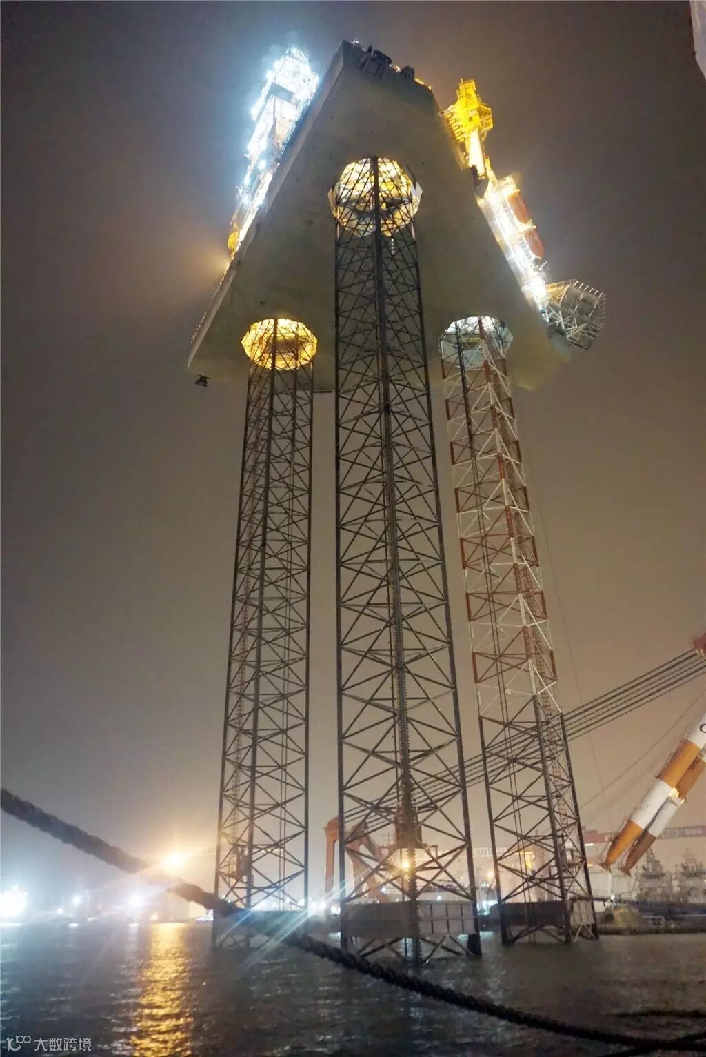 2015年的第一天,龙穴厂区360米大坞迎来了新年的第一吊——R-550D钻井平台第一个桩腿分段的翻身插桩。这意味着平台建造桩腿关键路线取得突破性进展。为了提高效率和降低建造成本,平台的建造者独辟蹊径,在世界上首次采用桩腿、桩靴先总组后搭载的建造方案,这直接节省了150个高3.6米大坞墩的制作成本。