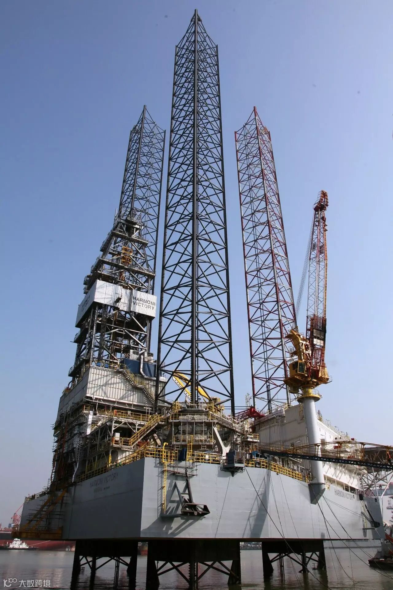 怎么让R-550D在海上站得住,站得稳?这是难题,也是平台建造首先要解决的问题。R-550D采用了高强度、高刚度重量比、低水阻力的桩腿设计。3支高达170米的桩腿基本由主弦管与斜撑管组成,这样,三支桩腿利用桩靴紧抓海底,像三支巨大的钉子将整个平台牢牢固定于海上,在恶劣的海况下,R-550D仍然可以做到我自岿然不动。