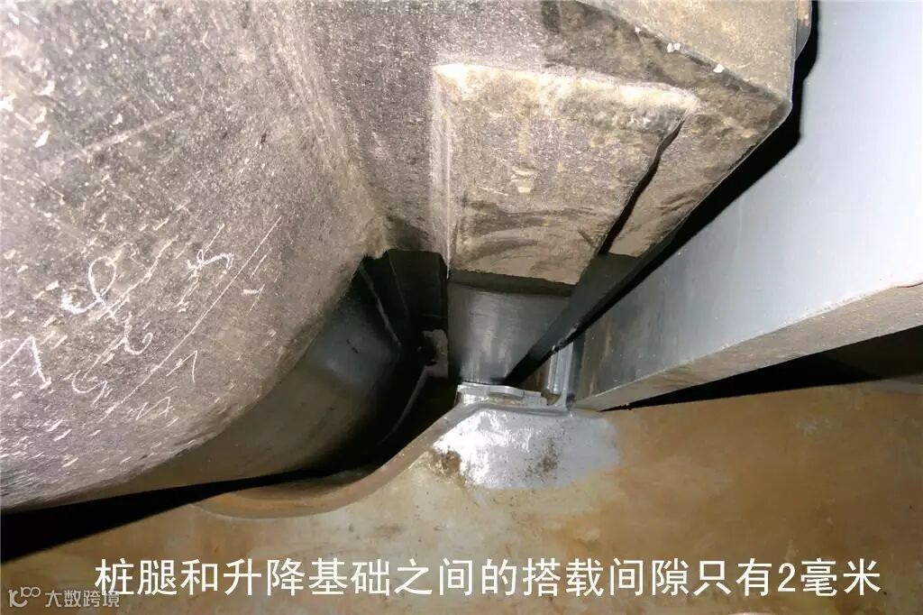 这些桩腿+桩靴总段,直径超过16米,要用900吨龙门吊插入到主船体的3个升降基础中,插入间隙只有2毫米,这是一根缝衣针针眼的大小。这是一场挑战工程极限的“穿针引线”,工程人员对整个施工工艺反复优化,现场吊装的每一步操作都精确到了毫米级,确保每一次顺利吊装到位。