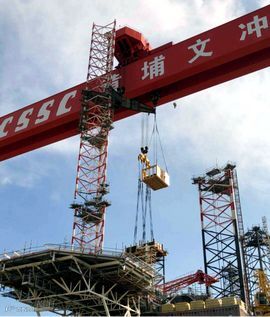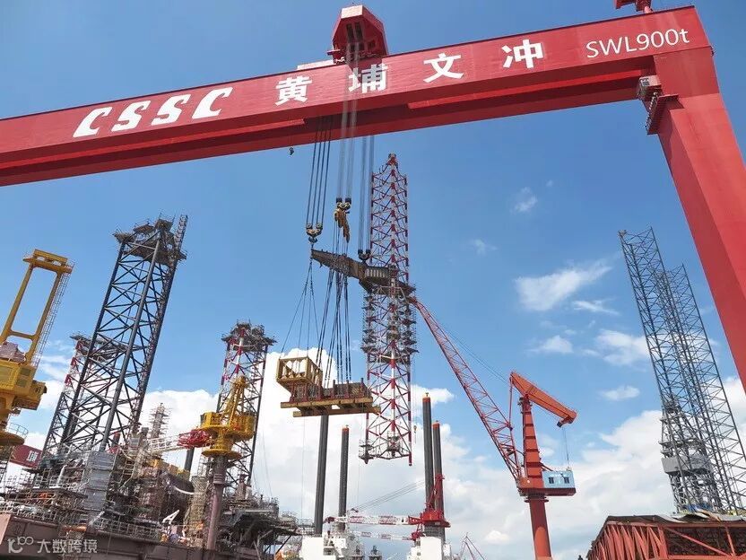 “快看!那个桩腿吊装的时候比龙门吊还高,这也太神奇了吧!”