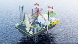 ▲ Z-210 多功能自升平台本平台是一艘用于海上作业,带有自航能力的自升式平台,最大作业水深85.34米。本平台设有生活区,能够提供150人的就餐、住宿等。设1台主吊机(220吨)、2台70吨辅吊机。