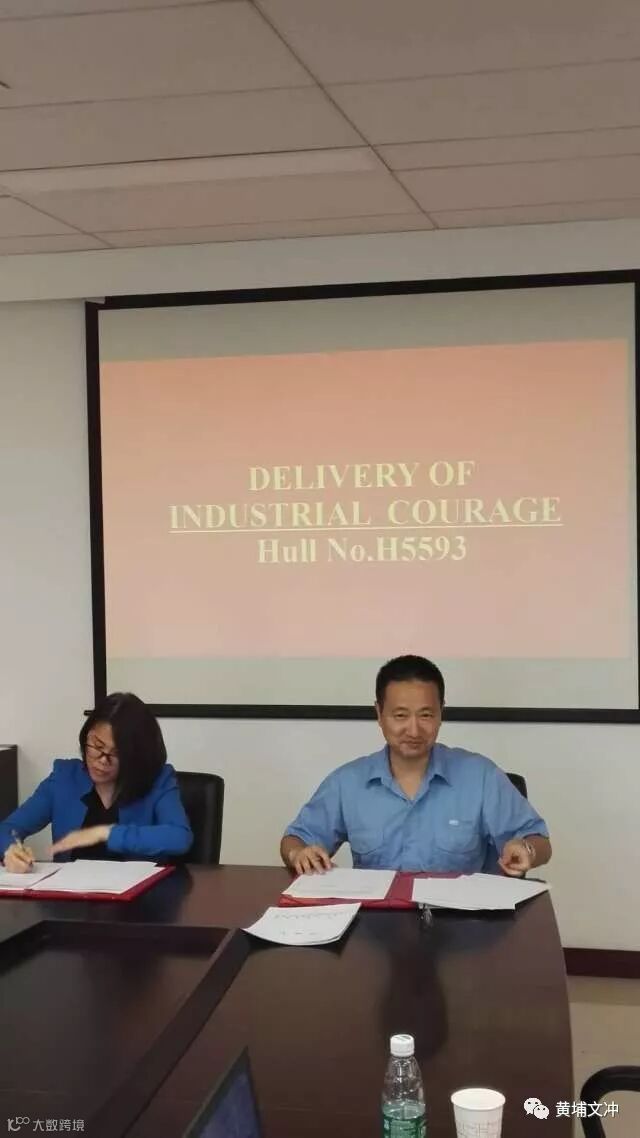 公司副总经理李晞在交船文本上签字,标志着8400DWT多用重吊船正式交船!