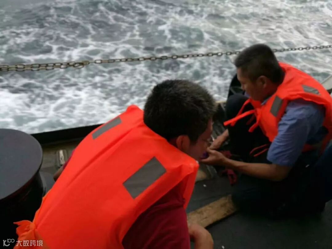 长期海上漂,随行护航人员都有不同程度的晕船,在修复过程里,护航人员边吐边修理,汗流浃背。